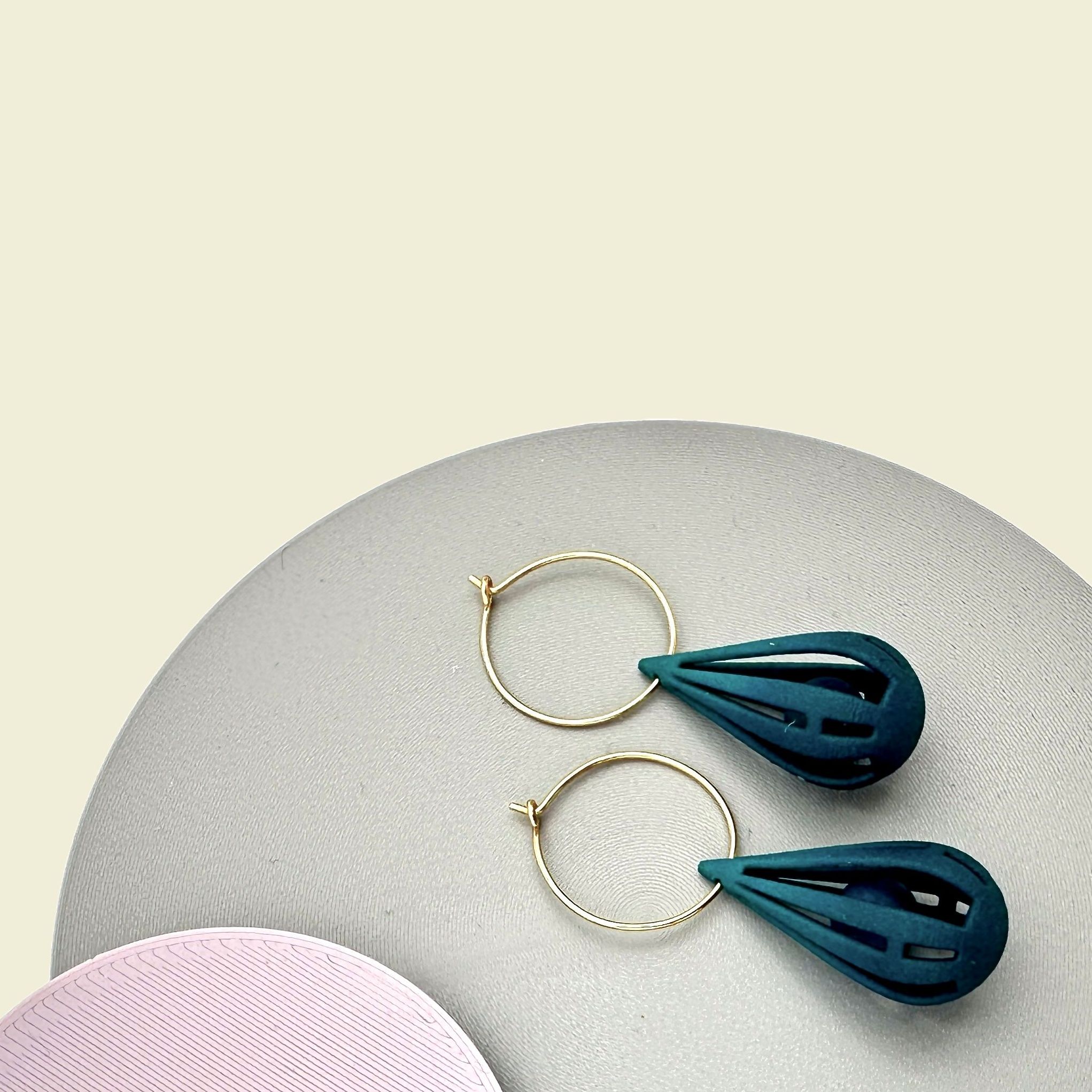 Disse smukke geometriske dråbeøreringe er det perfekte tilbehør til at tilføje en moderne og stilfuld touch til enhver outfit. De er 3D-printede og fremstillet i nylon, hvilket gør at de er holdbare, men stadig meget lette. Mundrs øreringe er håndfarvet med tekstilfarve og kan derfor variere ift billedet. Disse øreringe tilbyder en unik kombination af farverig glæde og skønhed.