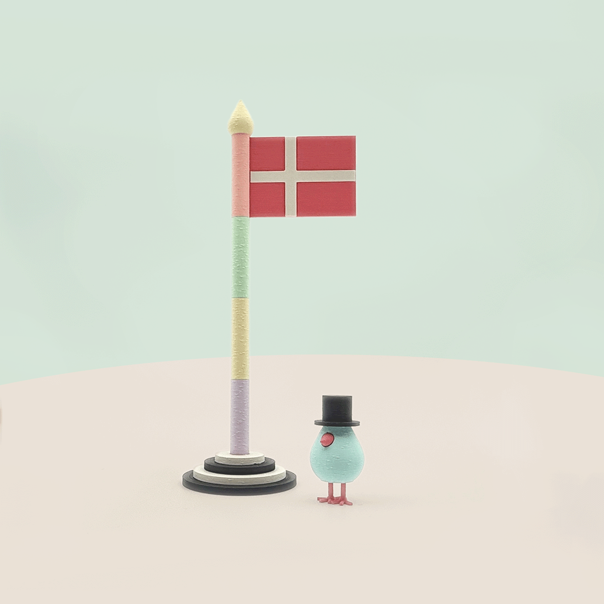 Fødselsdagsflagfuglefest i fine farver.  Skønne flag fra Mundrs univers, der kan sprede glæde året rundt. De findes i to modeller: En klassisk rød/hvid og en fræk pastelfarvet. Flagene er selvfølgelig modulære og passer med vores andre stabelbare figurer. Flaget kommer i en fin æske sammen med en fødselsdagsfugl, der kan flyve til tops i flagstangen 🦜🇩🇰