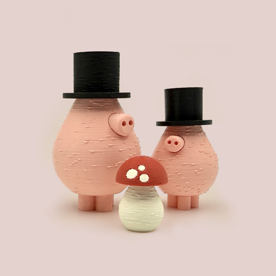 Oplev vores finurlige efterårsgrise, skabt af genanvendt bioplastik, der omfavner efterårets skønhed.