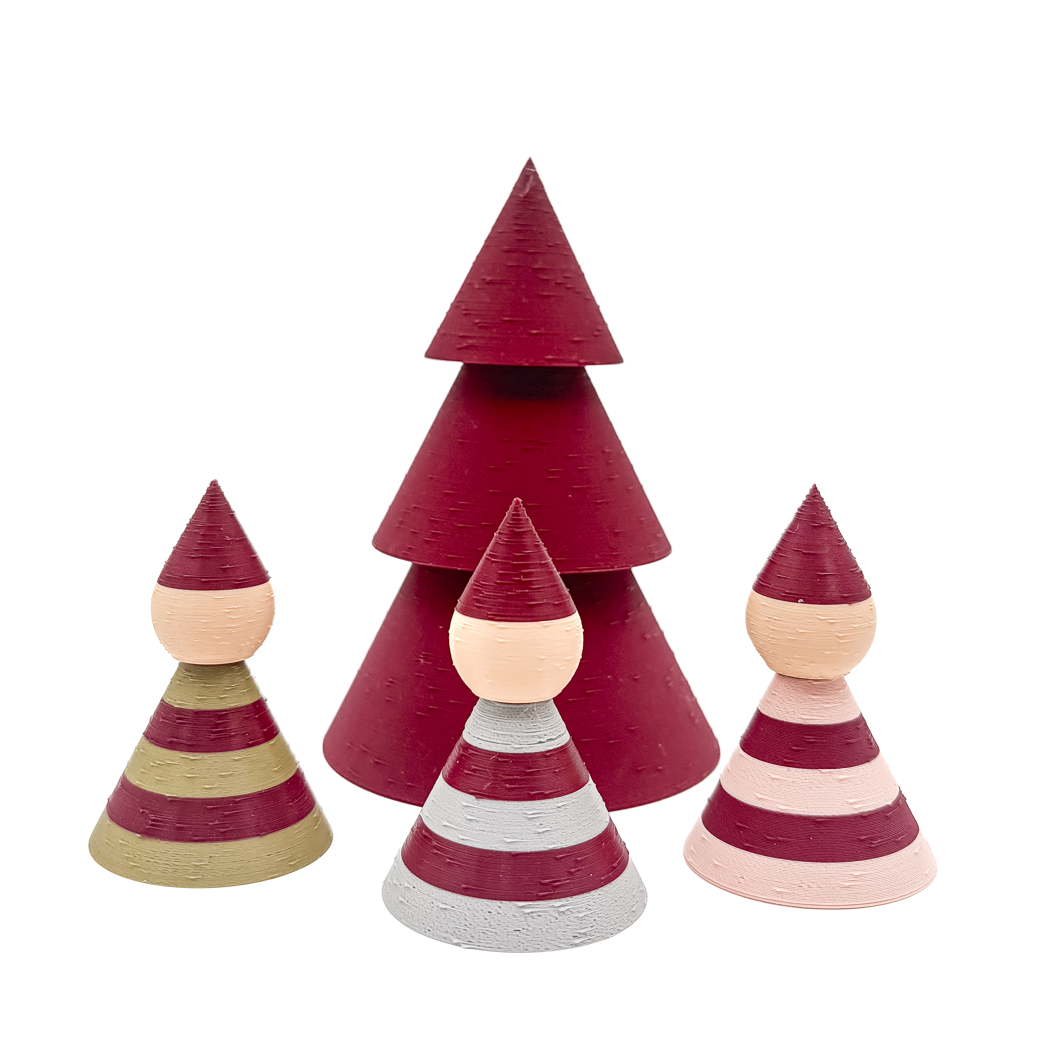 Dette skønne julesæt med et bordeauxfarvet træ og tre stribede nisser bringer Mundrs finurlige univers til live. Nisserne kan danse om træet eller kombineres med andre figurer, så du kan skabe dit helt eget legende julelandskab.