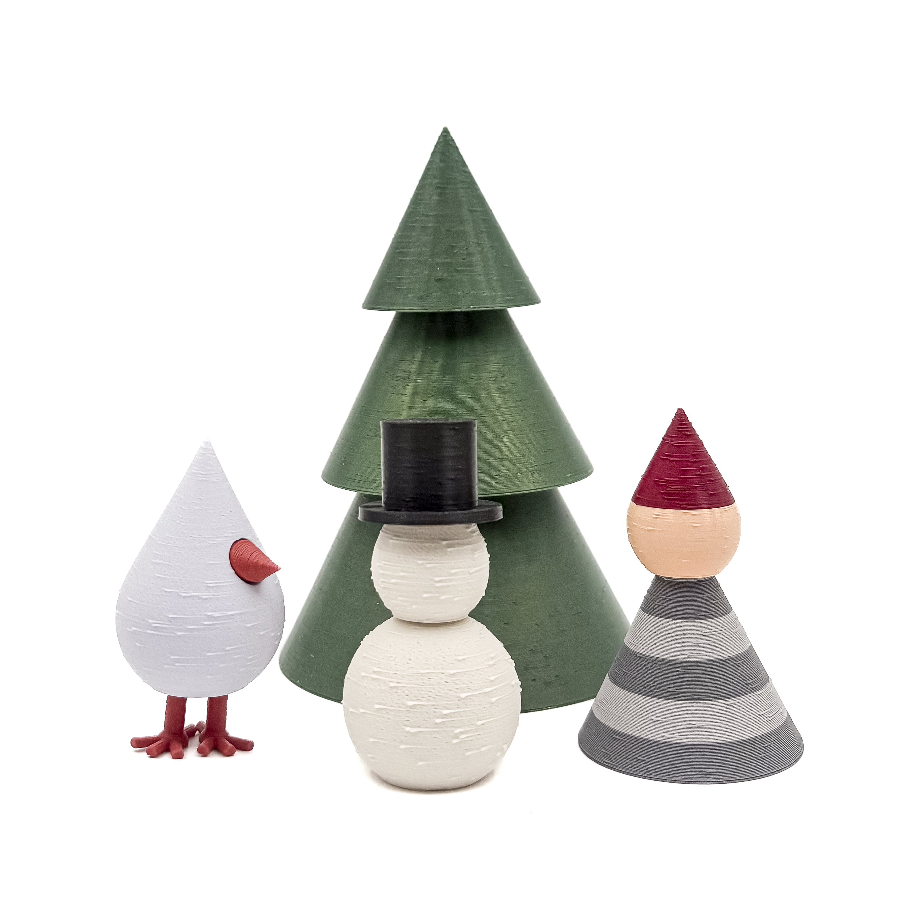 Mundr Julesæt – Skovgrønt Træ, Snemand, Gråstribet Nisse & Lavendel fugl