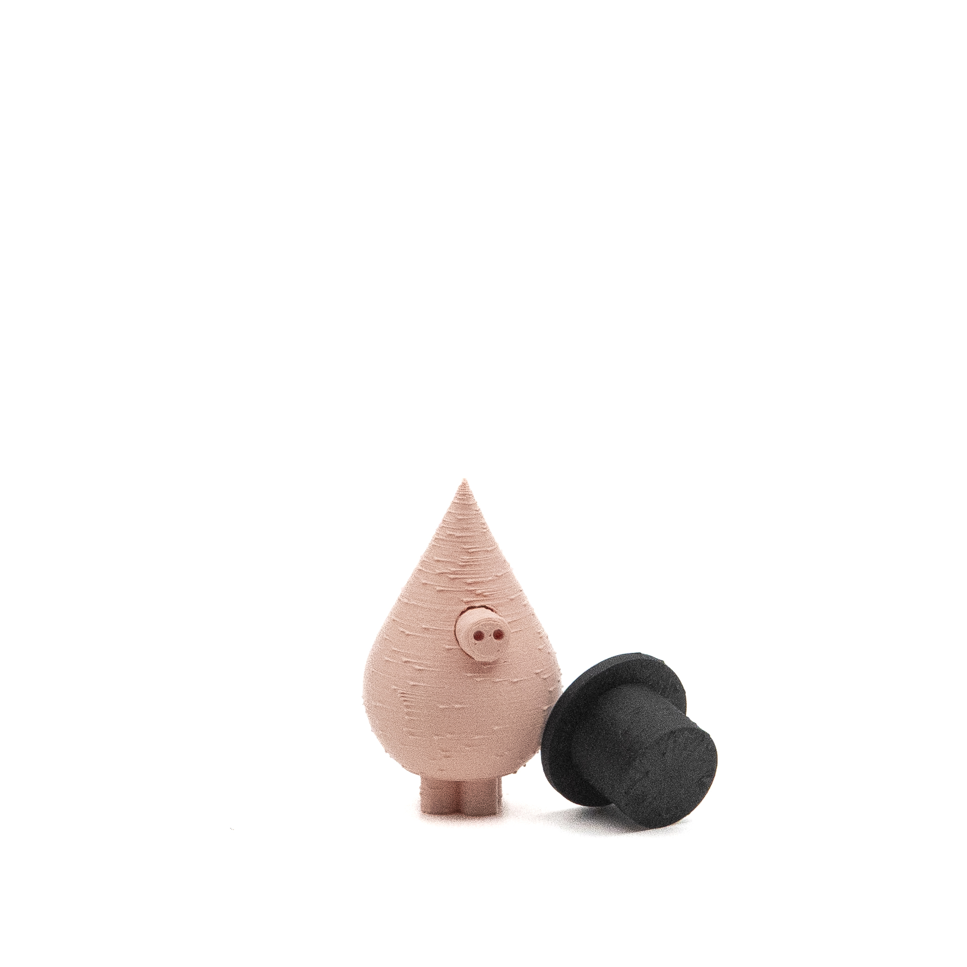 Med finurlig hat og glimt i øjet træder julegrisen ind i Mundrs farverige univers. En klassisk figur med et strejf af julehumør, der passer perfekt blandt træer, nisser, svampe og fugle. 3D-printet i genanvendt bioplastik, klar til at sprede varme og leg i det modulære landskab – altid parat til fest og ballade.
