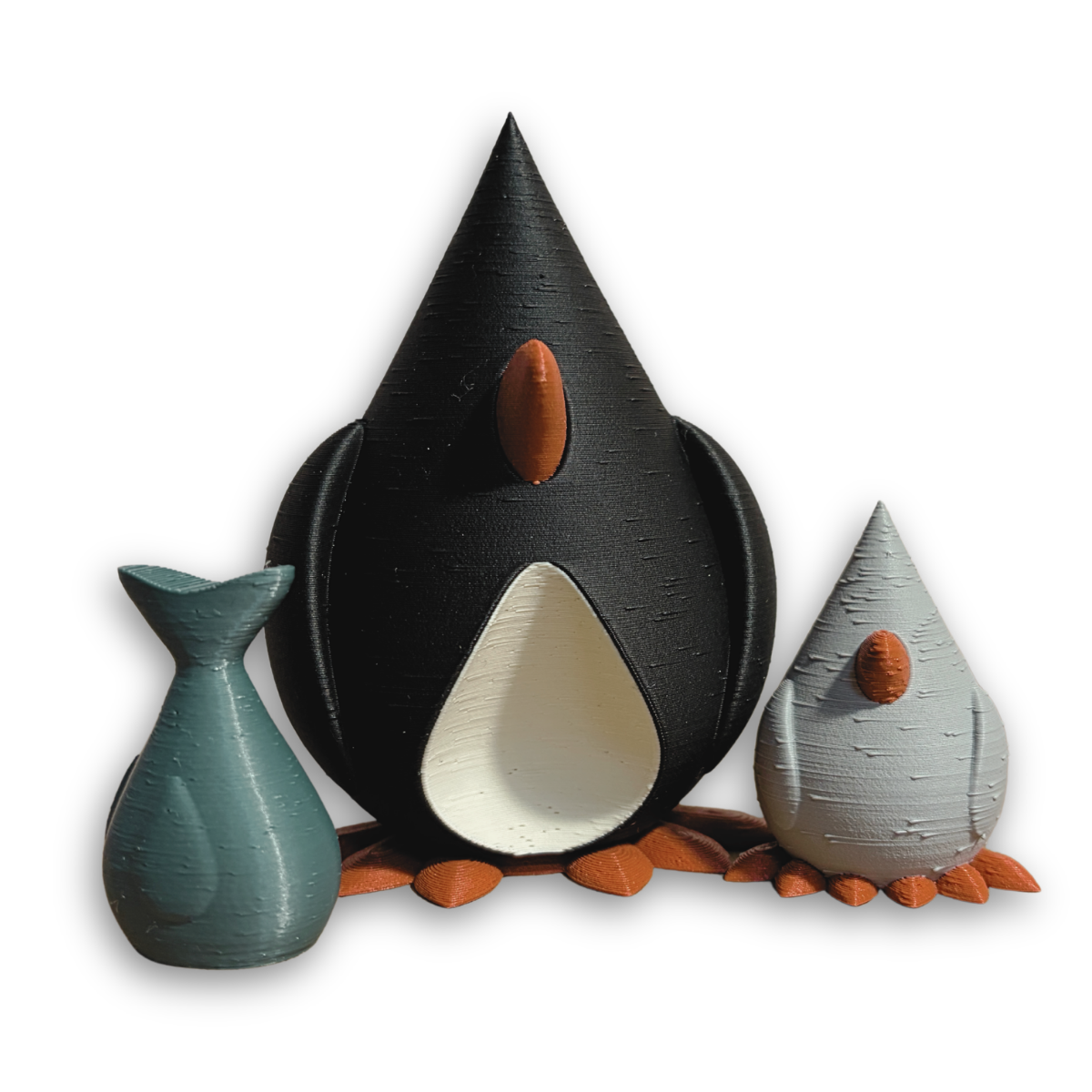 3D-printet i genbrugsbioplastik, hvor bæredygtige materialer møder kreativ formgivning. Pingvinens rene linjer og udtryksfulde design gør den både til et dekorativt blikfang og en hyldest til dyrelivet.
