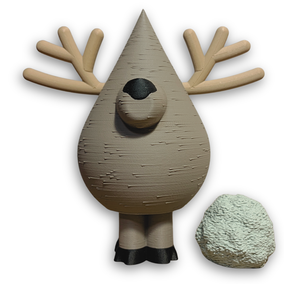 3D-printet i genbrugsbioplastik, hvor bæredygtige materialer møder kreativ formgivning. Rensdyrets rene linjer og udtryksfulde design gør det både til et dekorativt blikfang og en hyldest til dyrelivet.