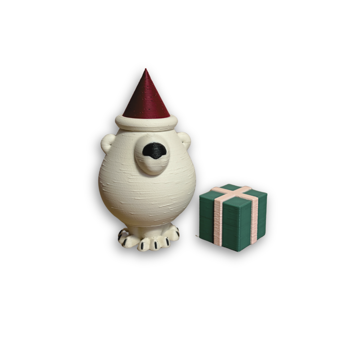 Isbjørn med nissehue og gave