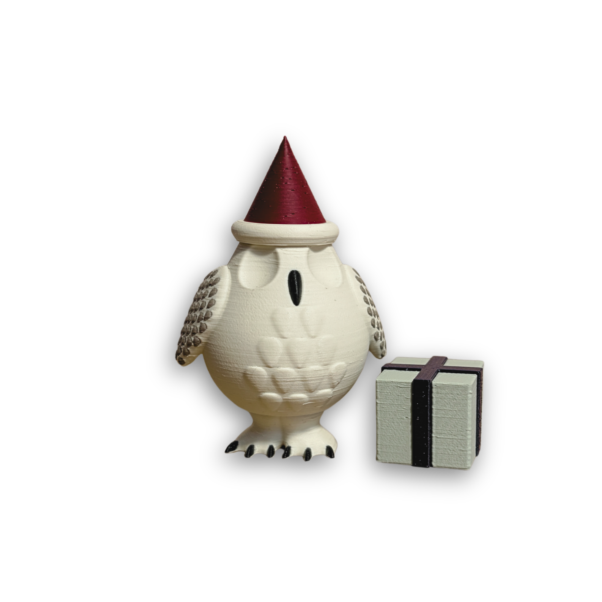 Sneugle med nissehue og gave